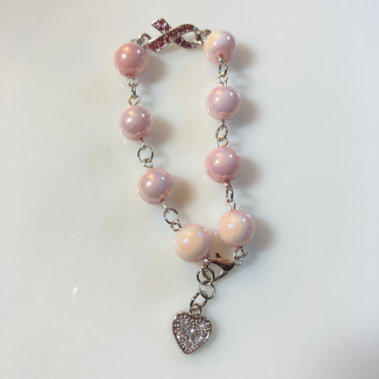 B24-F46C - Pink, White & Silver Bracelet w/ Focal