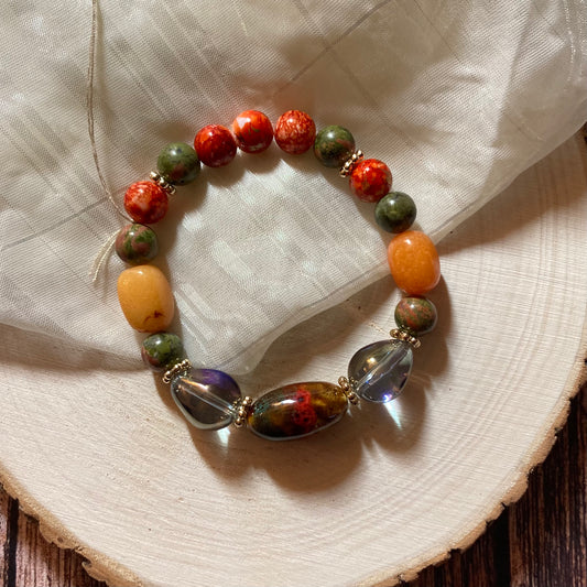 B24-F24 - Stretch Bracelet w/ Fall Colors and Focal