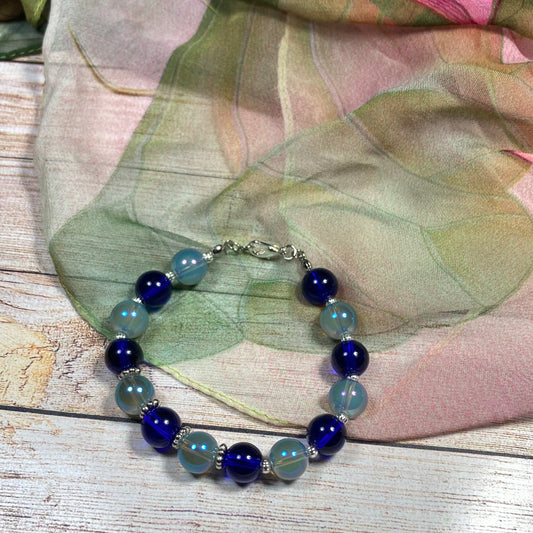 B24-48 - Blue & Silver Stretch Bracelet w/ Shell Charm