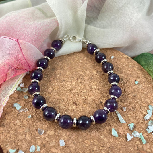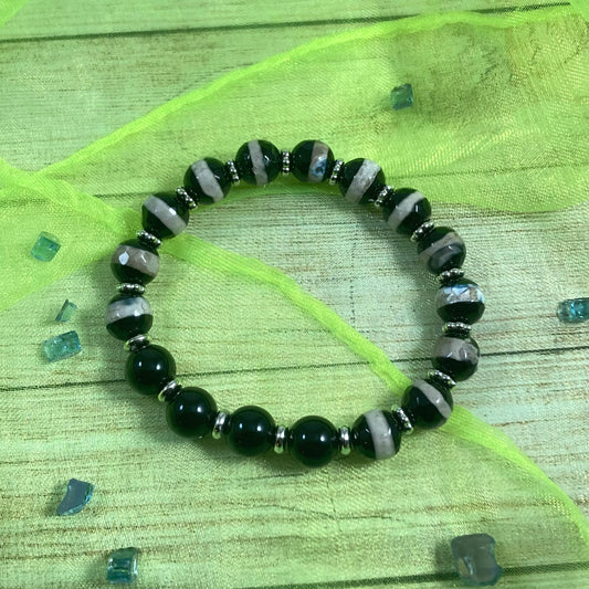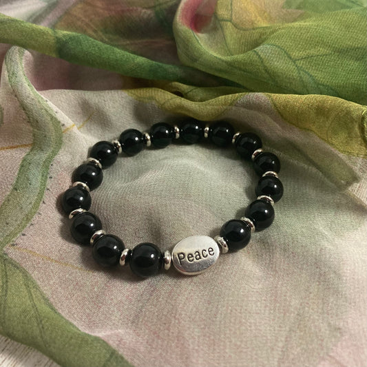 B24-21 Black & Silver Stretch Bracelet w/ PEACE Focal