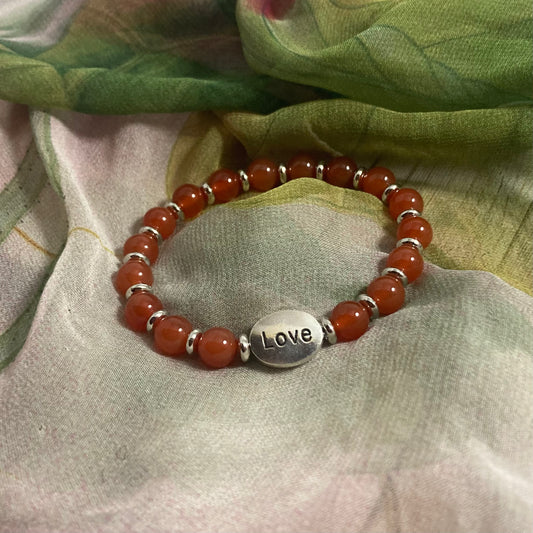 B24-23 Red & Silver Stretch Bracelet w/ LOVE Focal