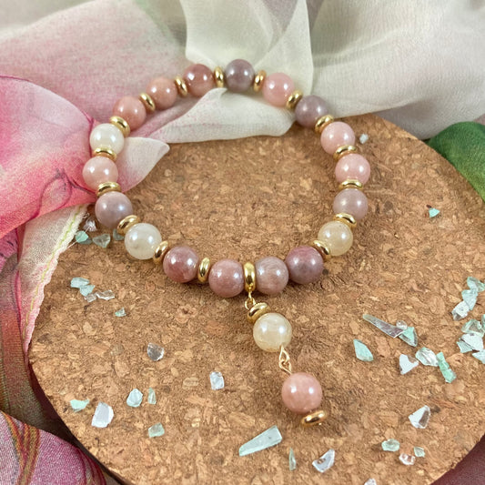 B24-25 - Pink & Gold Stretch Bracelet w/ Dangle