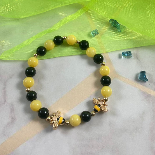 B24-31 - Yellow and Black Stretch Bracelet w/ Bee Focals
