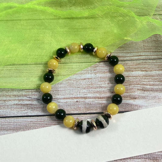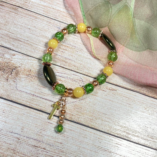 B24-37 - Green, Clear & Yellow Stretch Bracelet w/ Focal