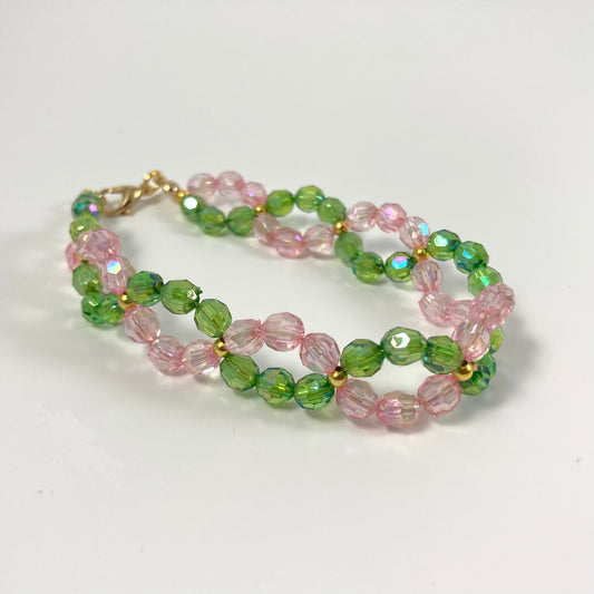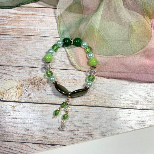 B24-34 - Green, Clear & Gold Bracelet with Charm