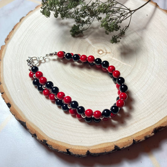 B24-27 - Red & Black Double Strand Bracelet w/ Silver Closure