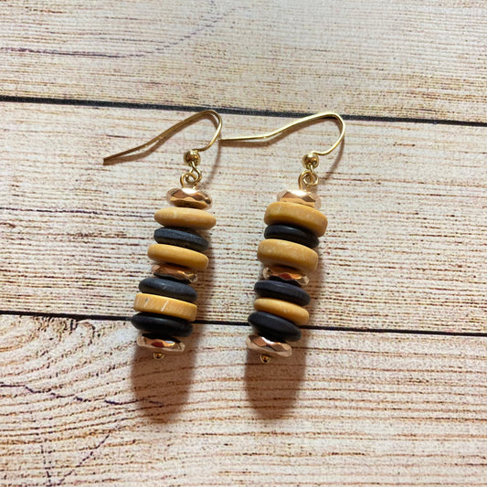 VE24-27 - Black & Gold Dangle Earrings