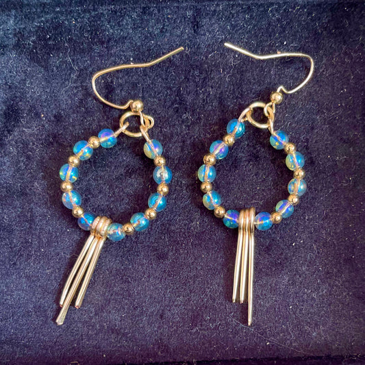 25 E26 Pretty sky blue beaded hoops with fringes