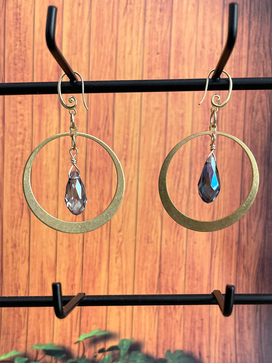25 E17 Brass hoops with blue teardrop