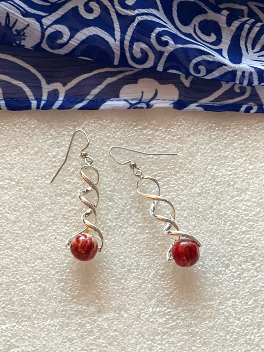 25E 22 Silver spiral earrings with red jasper