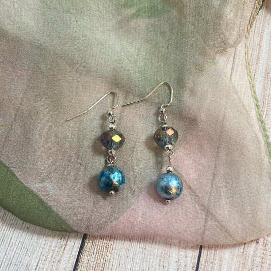 VE24-18 Silver/Blue Dangle Earrings