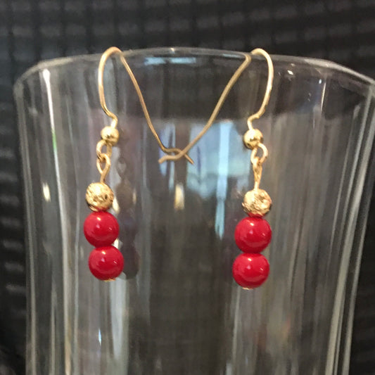 E24-F23 Red Glass and Gold Lava Earrings