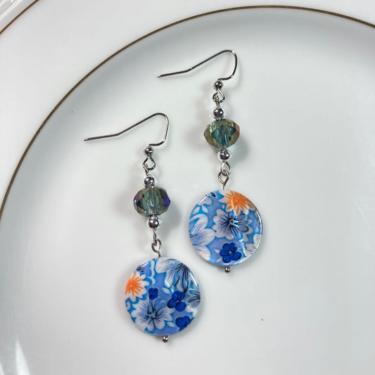 VE24-01 Blue & Peach Dangle Earrings