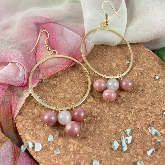VE24-25 - Gold Hoop Earrings w/ 3 Dangles of Beads