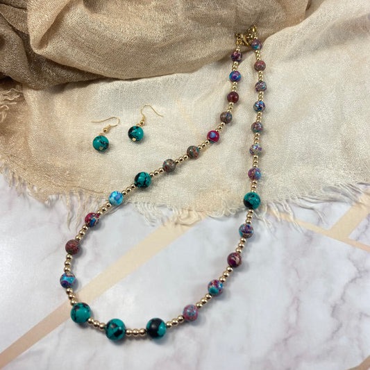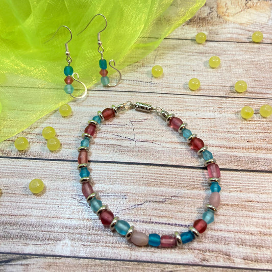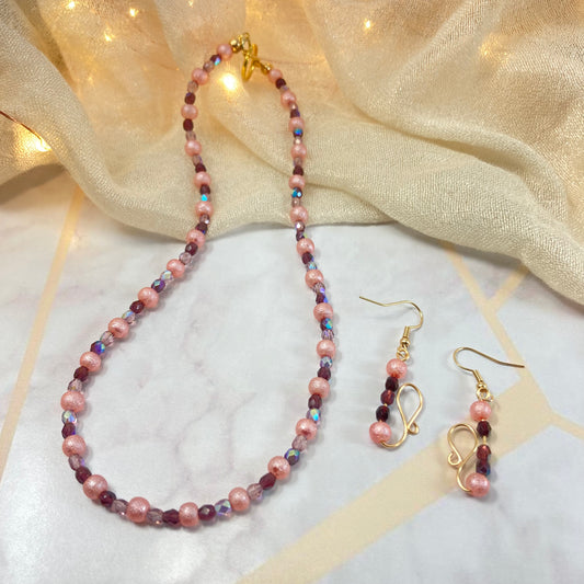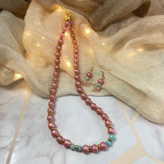 22S - Pink & Blue Frosted Necklace and Earring Set