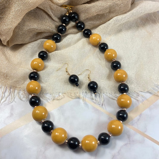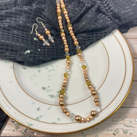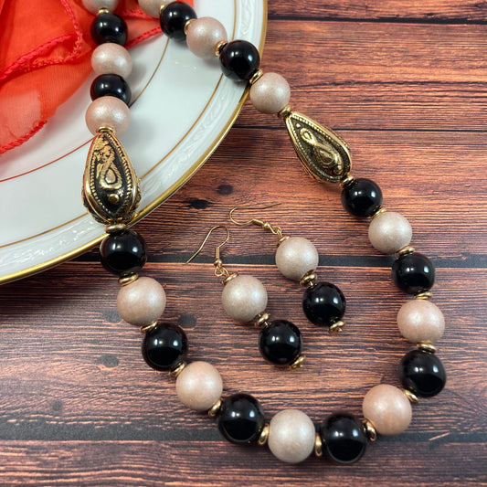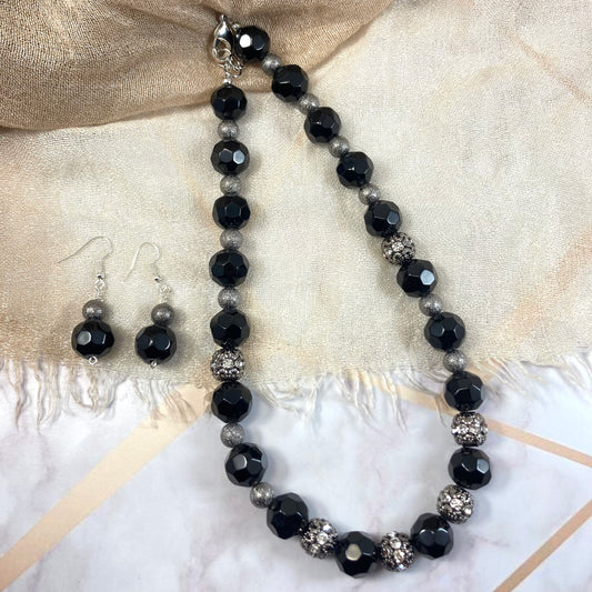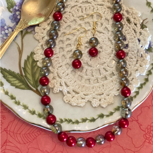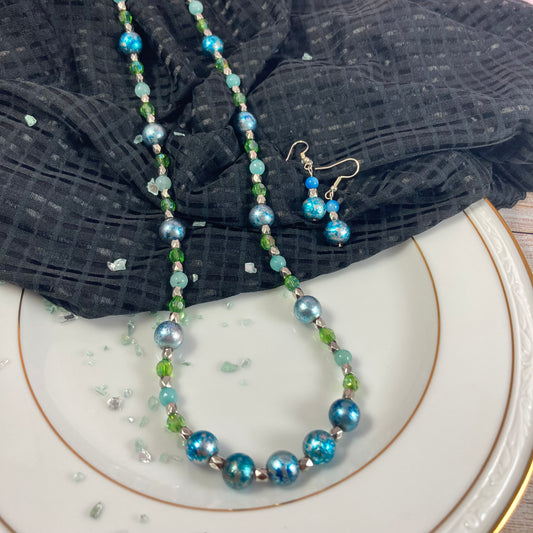 30S - Blue Metallic Glass Bead Necklace & Earring Set