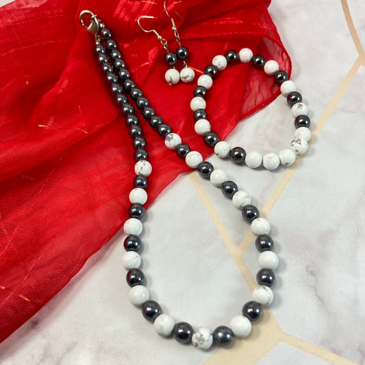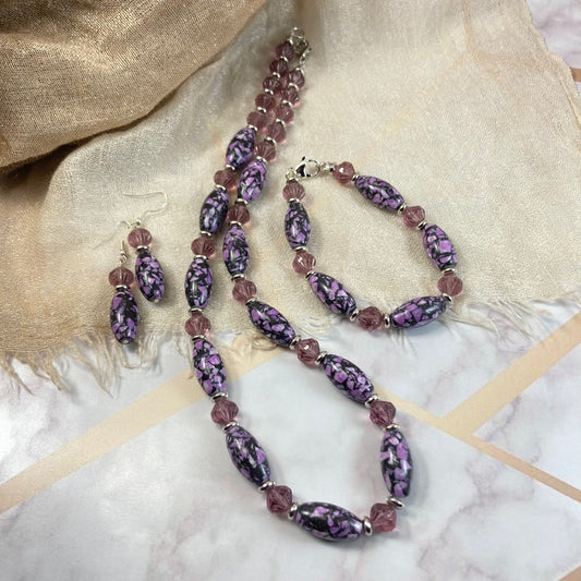 29S - Purple Marble & Glass Necklace, Bracelet & Earring Set