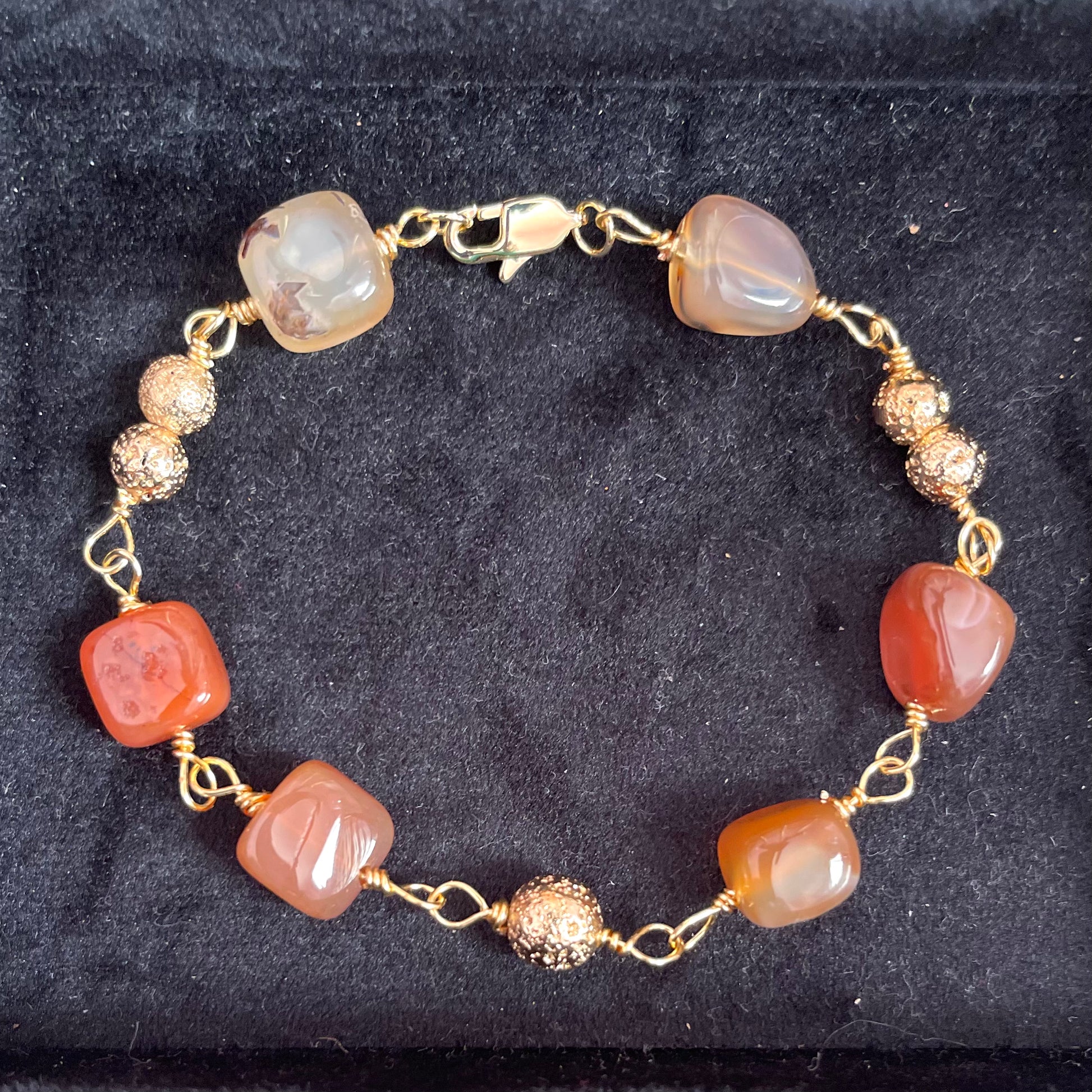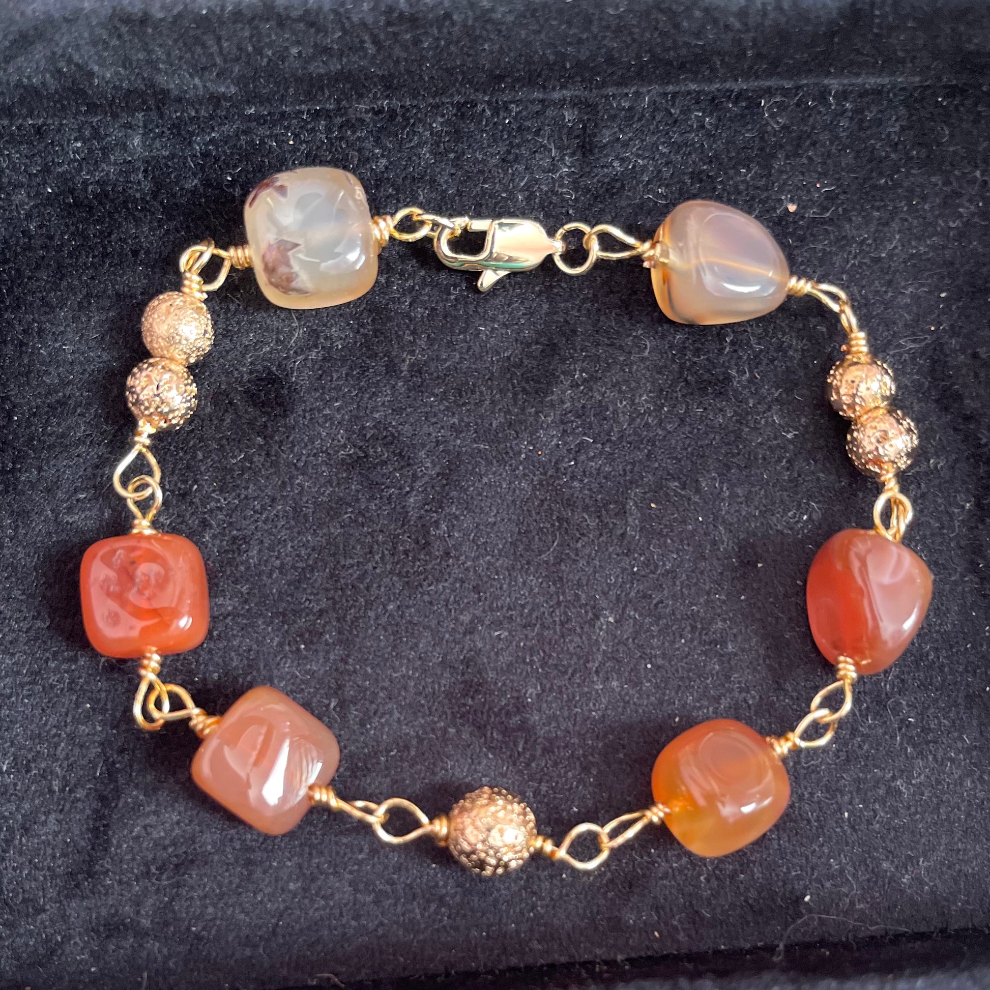 8" Gold linked bracelet - mixture of red aventurine gemstones and gold lava beads. Lobster claw clasp. Simple and elegant.