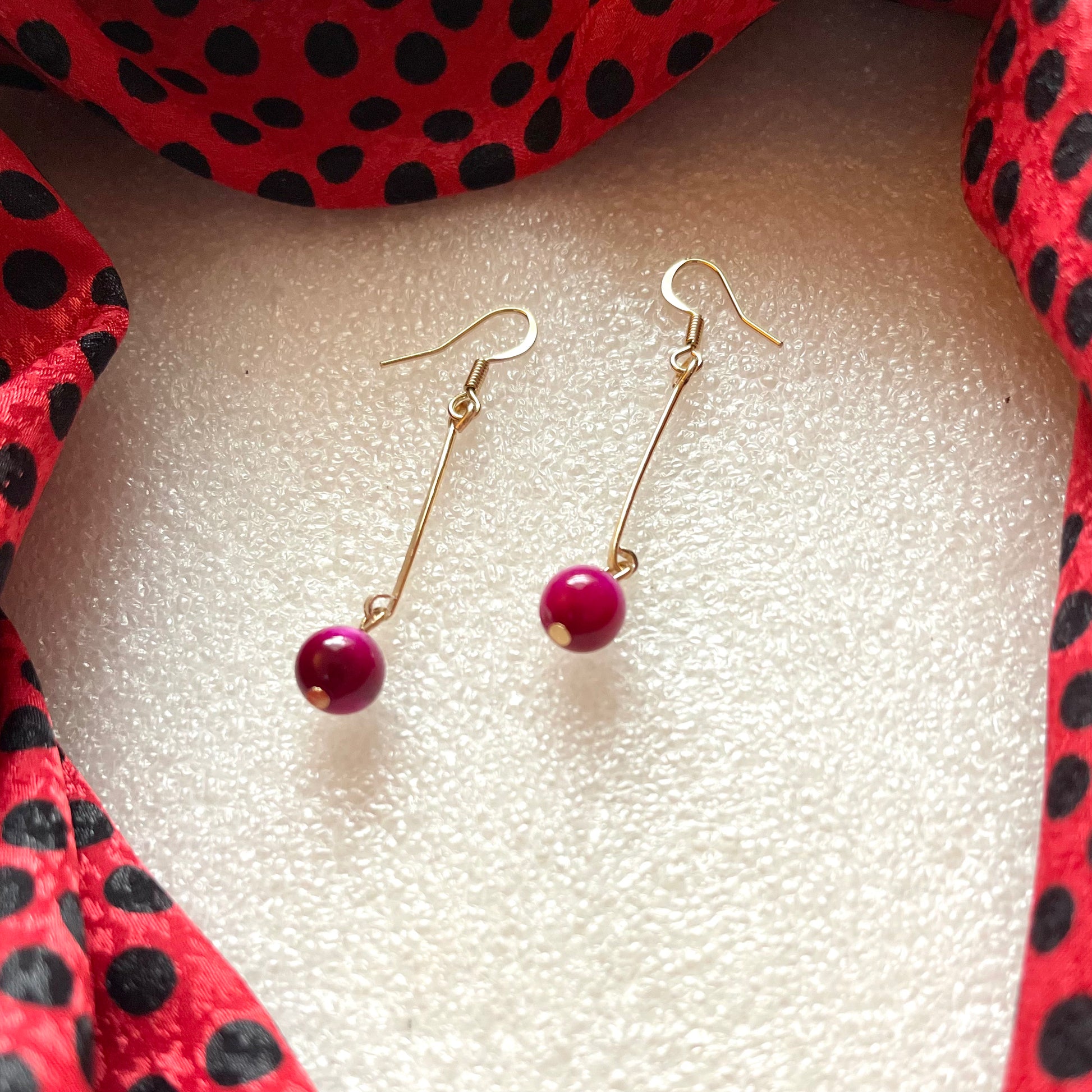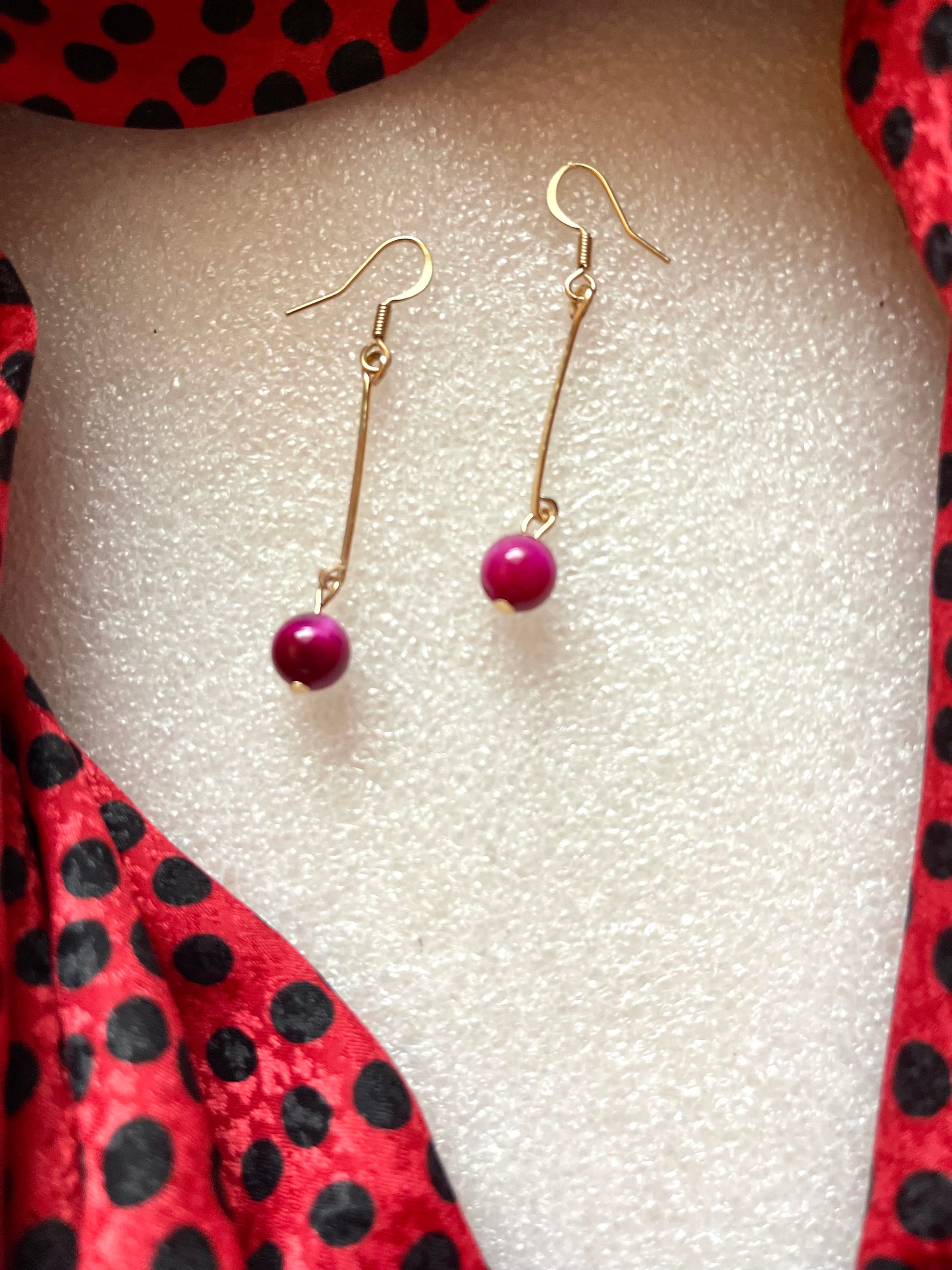 See ProductSimply beautiful dyed agate nugget and round gold lava on gold hooks.