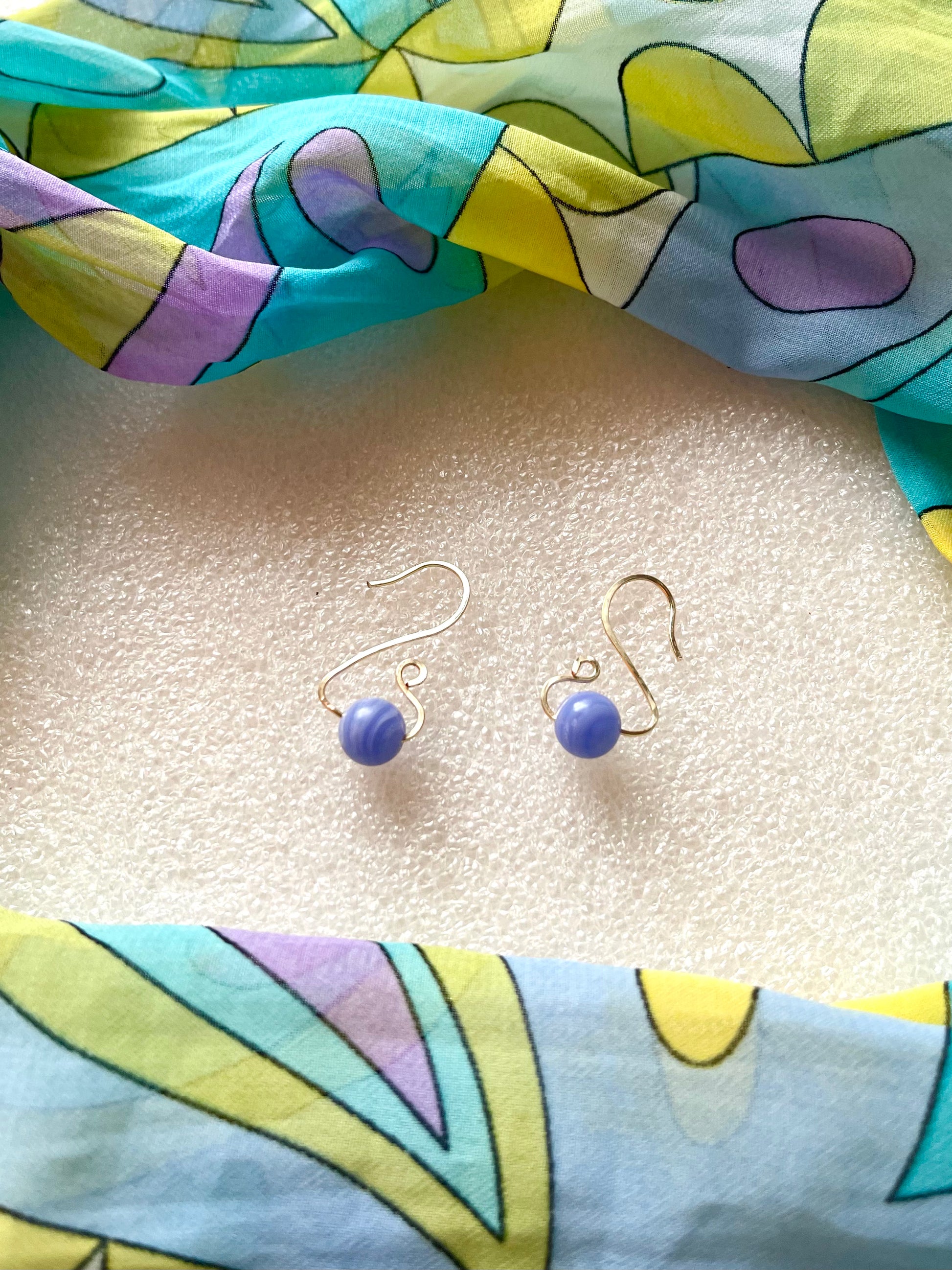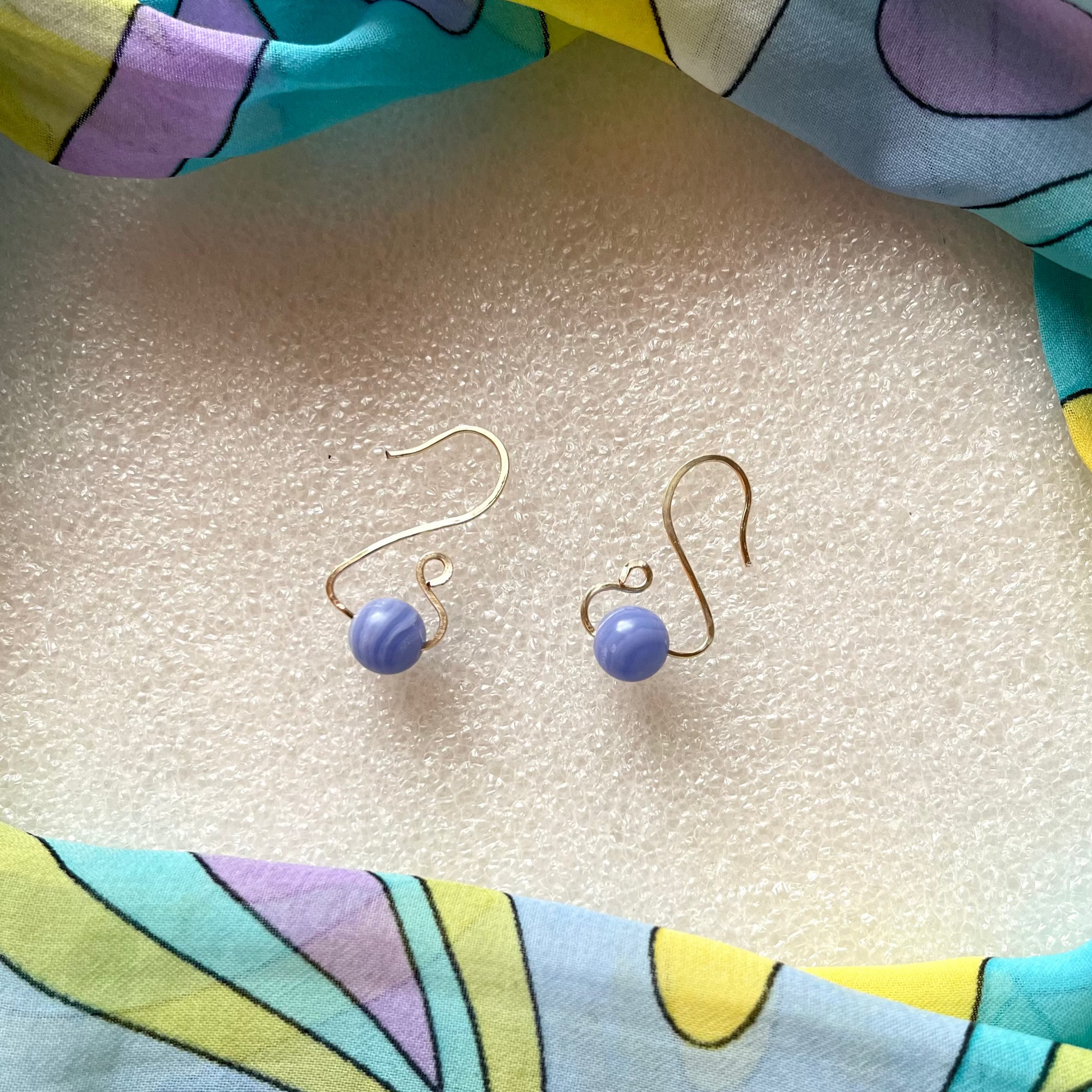 Dainty "swan" gold-copper hammered earrings with 8mm blue lace agate.
