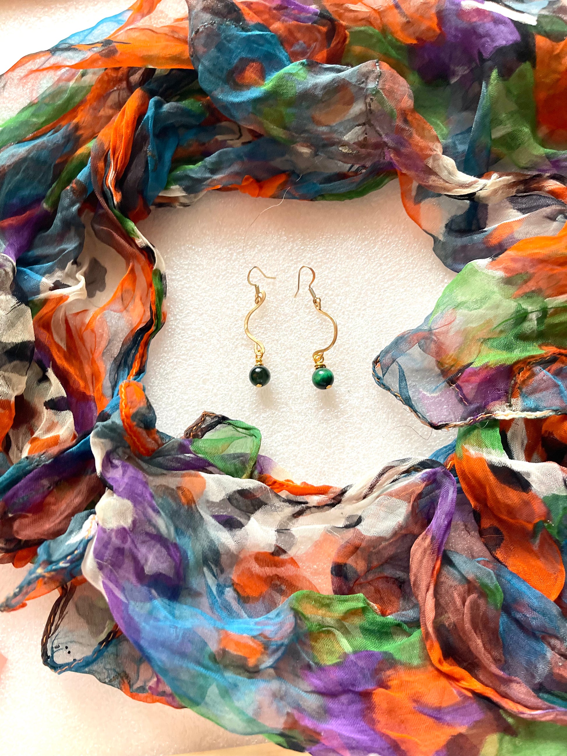 See ProductSimply beautiful dyed agate nugget and round gold lava on gold hooks.