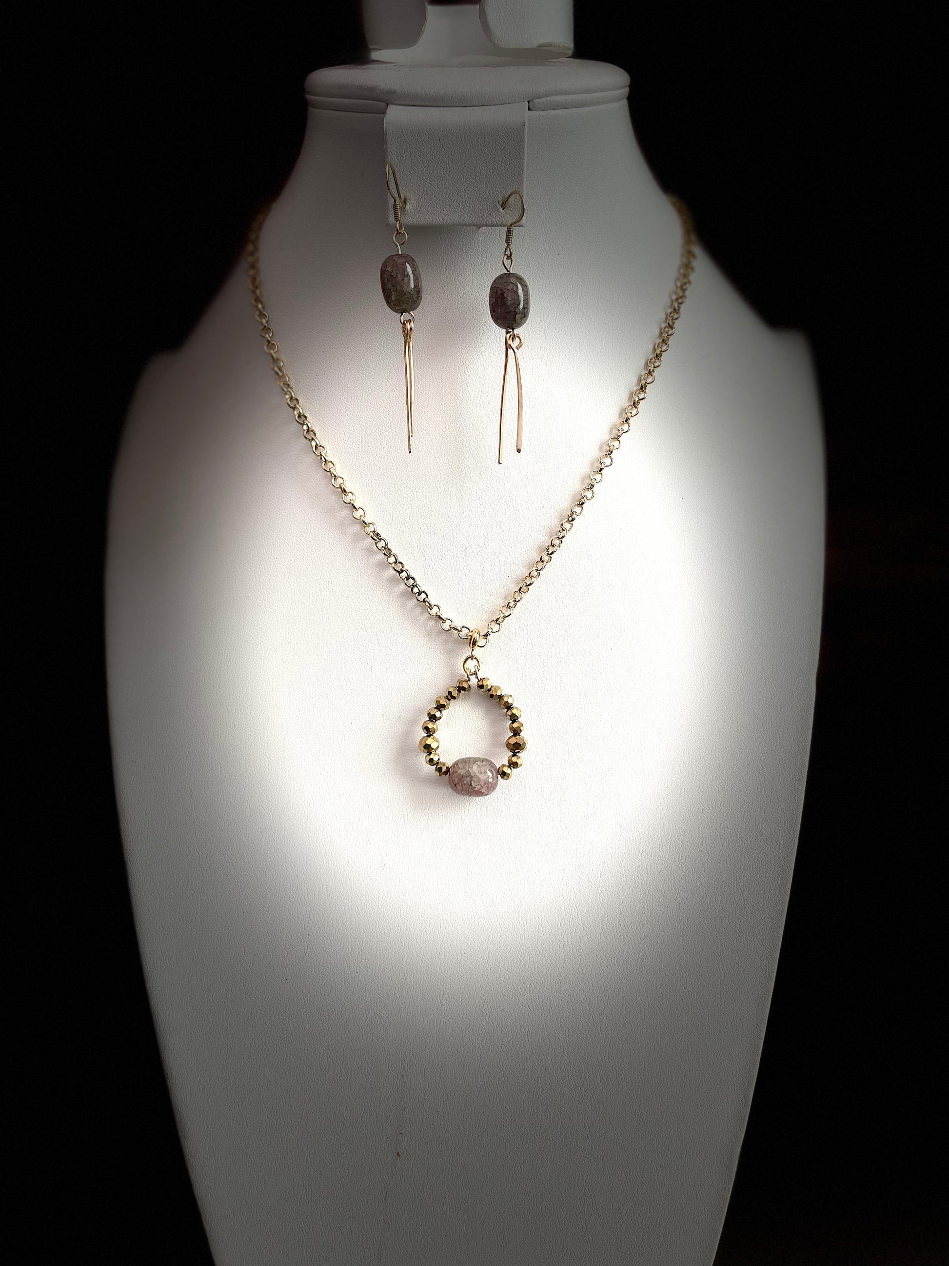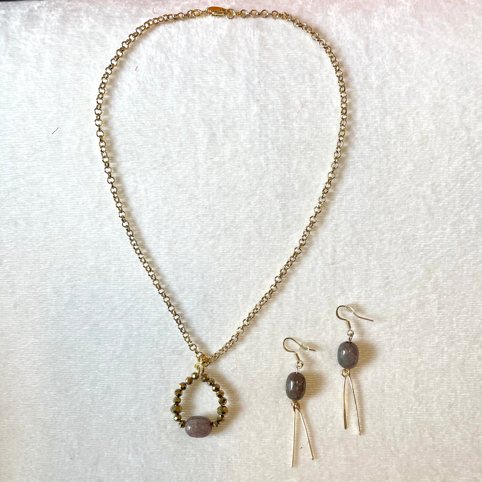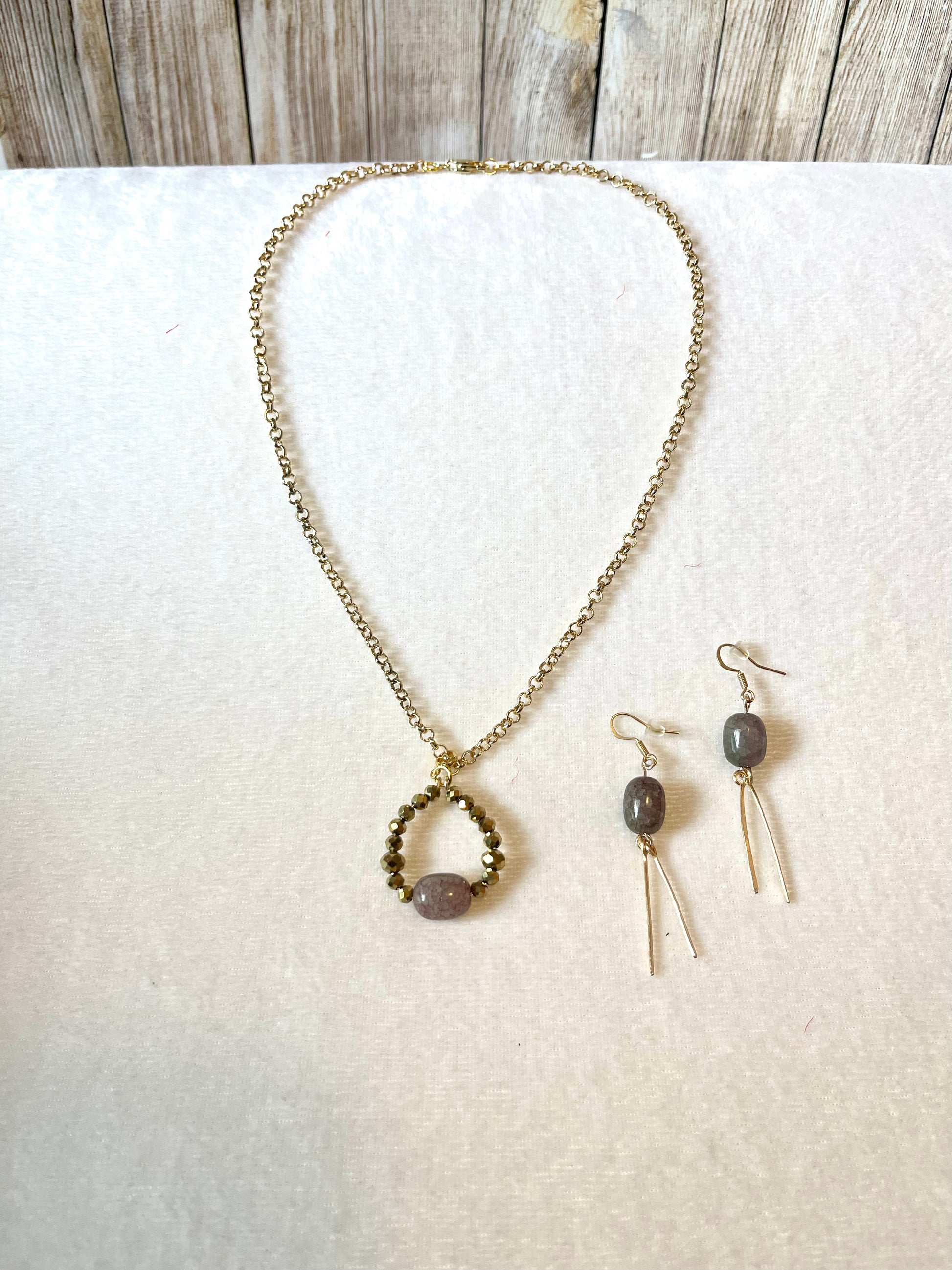 25 N-S15 Gold-tone faceted pendant necklace and earrings