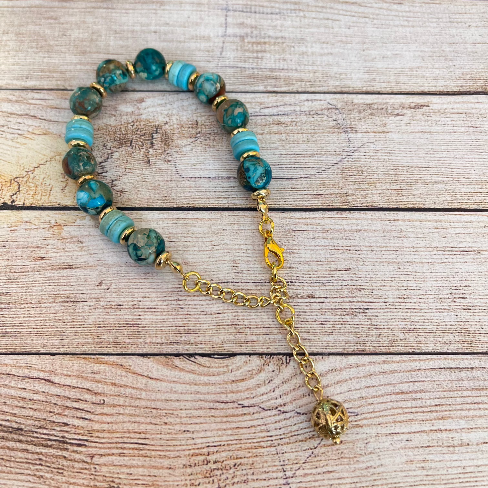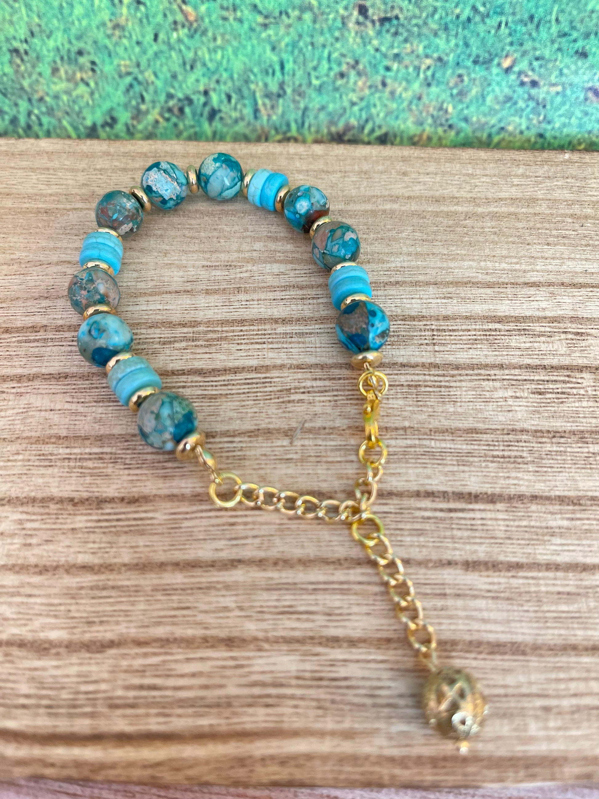 25B-15 - Turquoise and Gold Bracelet with Dangle