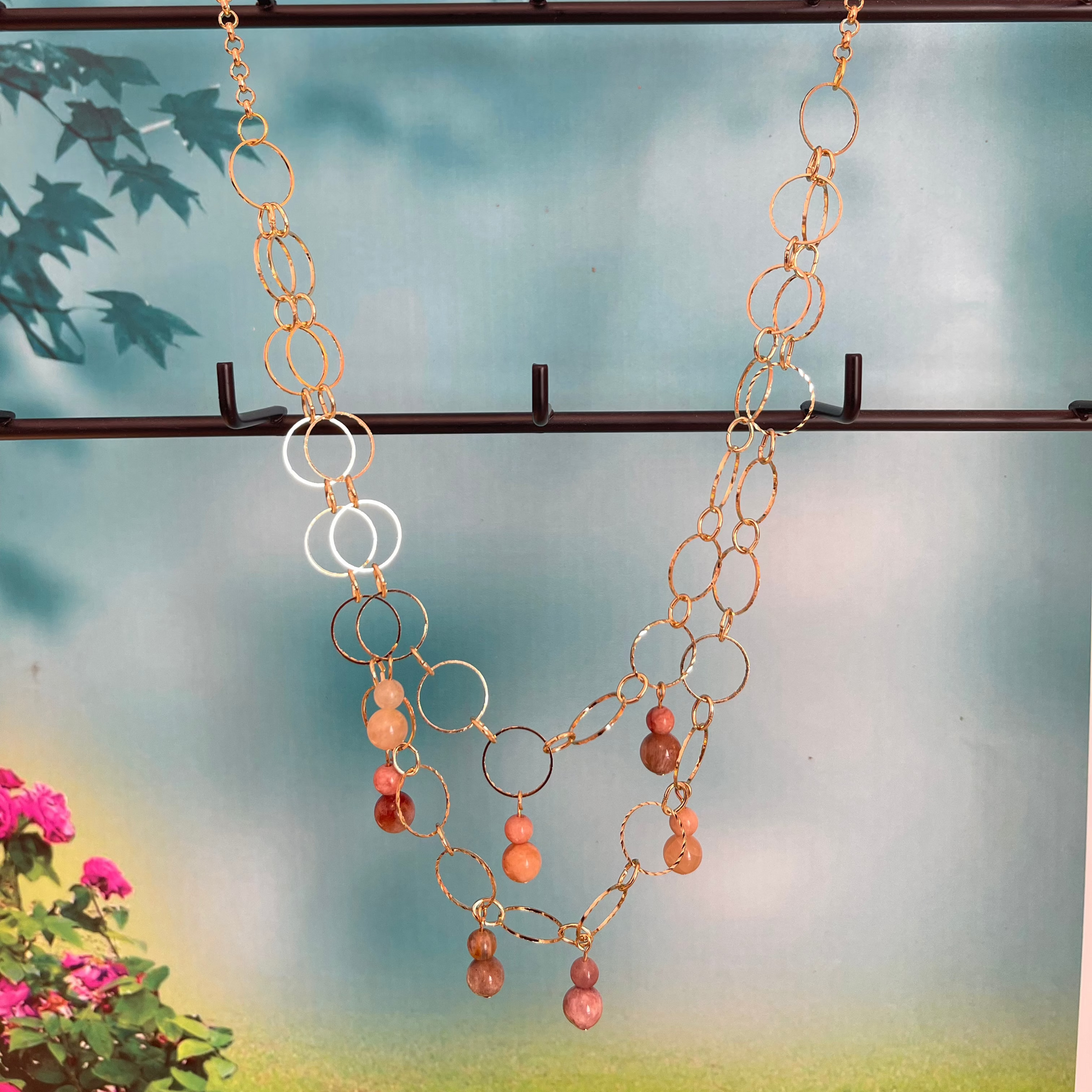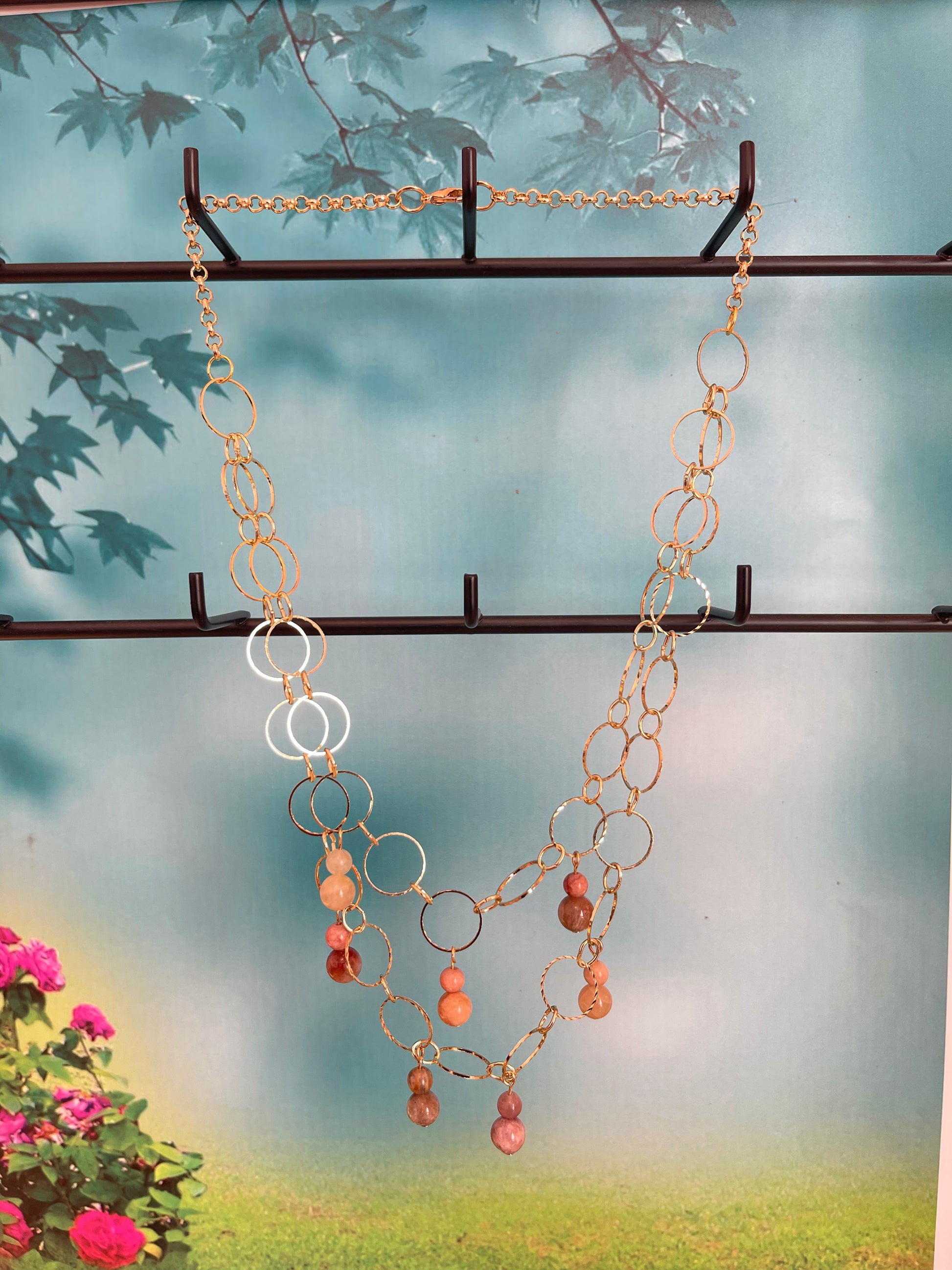Lovely and fancy circle link double chain necklace with lovely pearl drop dangles