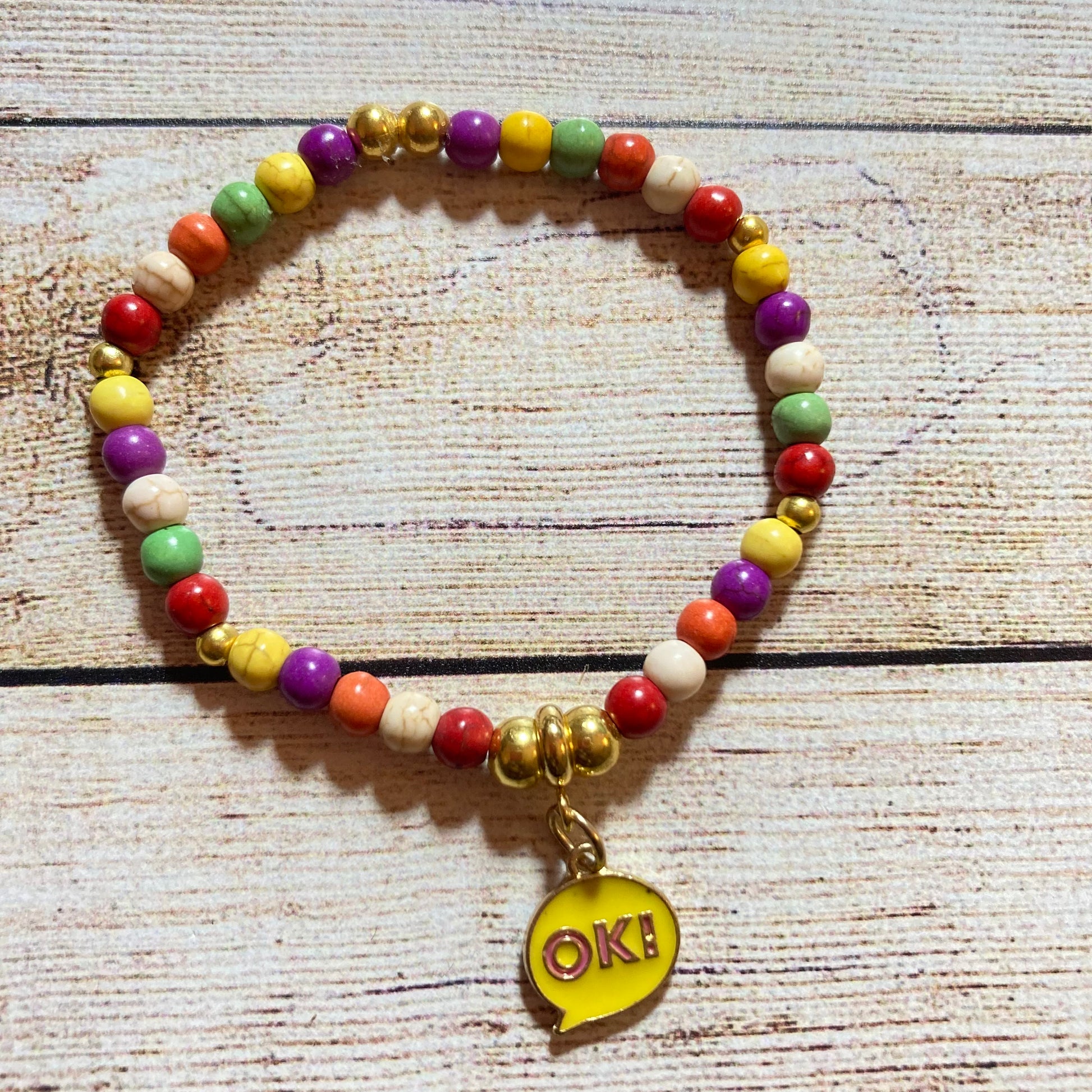 B24-GB5 - Colorful Stretch Bracelet with OK Charm