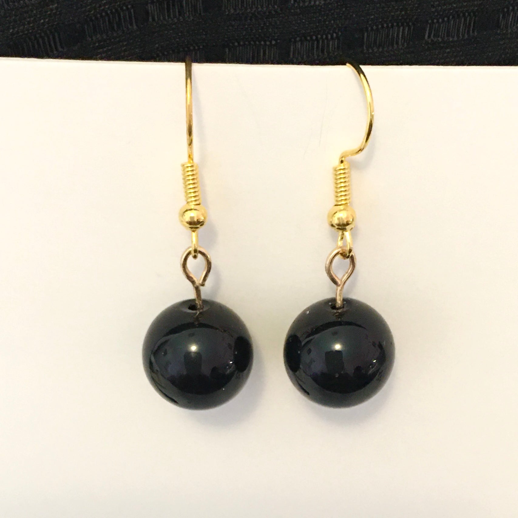See ProductSimply beautiful dyed agate nugget and round gold lava on gold hooks.