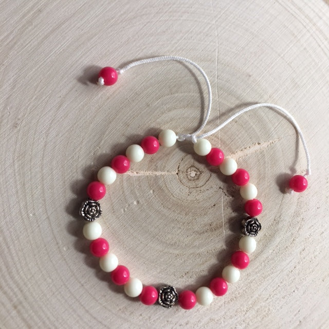 GB24-F06 - Pink & Cream Sliding Knot Bracelet w/ Rosettes