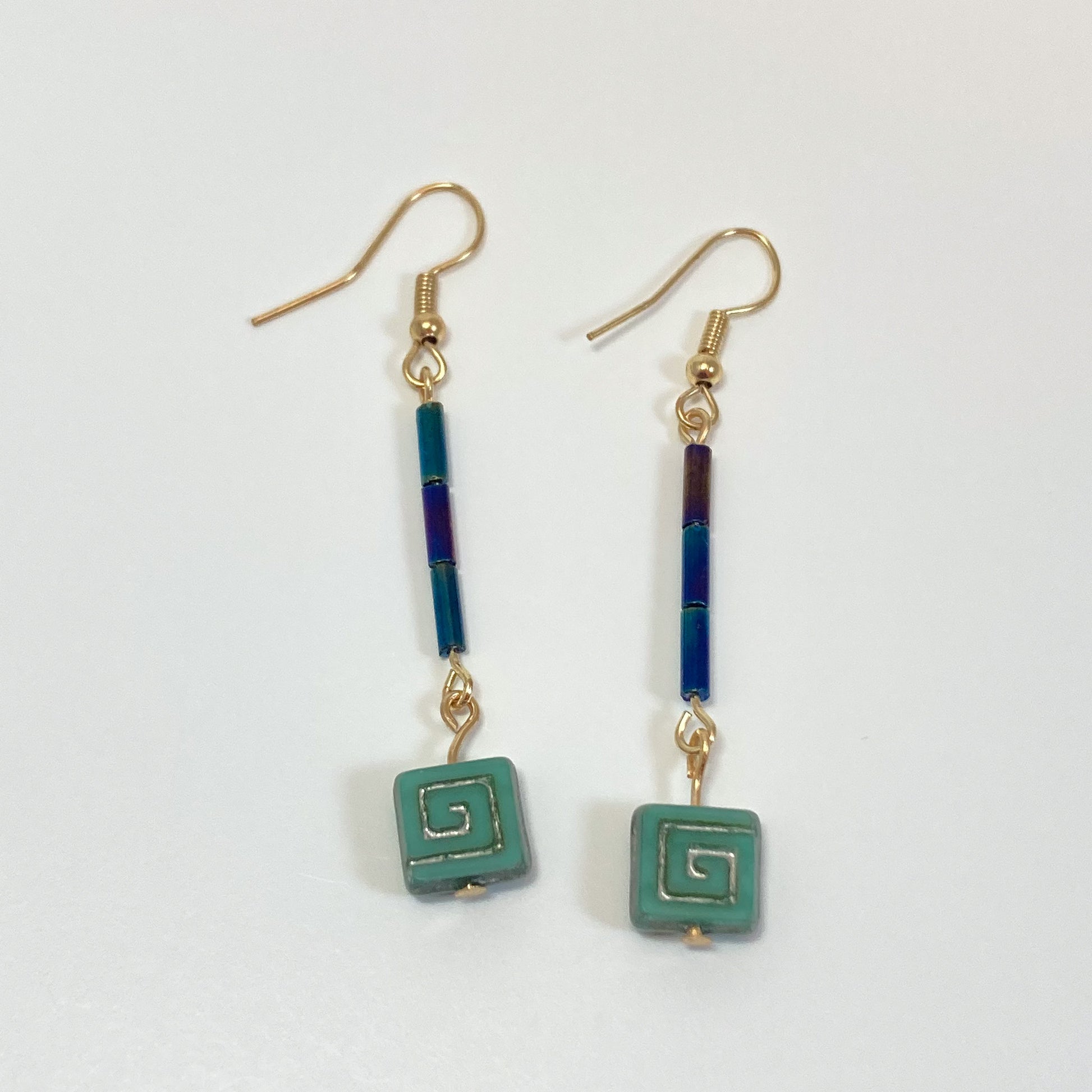 Vedangles - Beautiful Czech bohemian bead dangle and Rocailles tubes. Gold hooks.